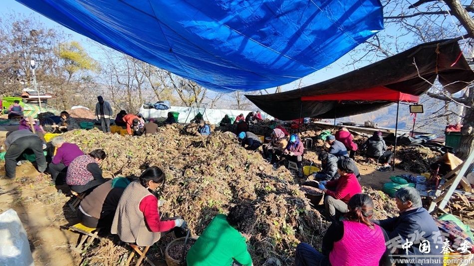 眼下,正值中药材款冬花采挖的好时节,走进秦安县千户镇周湾村款冬花种植示范基地,成群结队的群众正抢抓晴好天气,采挖款冬花,田间地头呈现出一派繁忙的景象。