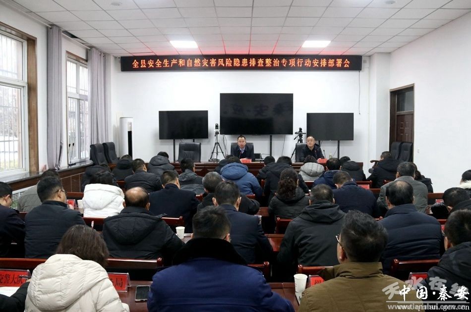 12月20日,秦安县召开安全生产和自然灾害风险隐患排查整治专项行动安排部署会。县政府副县长、公安局局长赵智彦,各镇分管领导及县安委会各成员单位分管领导共计40余人参加会议。