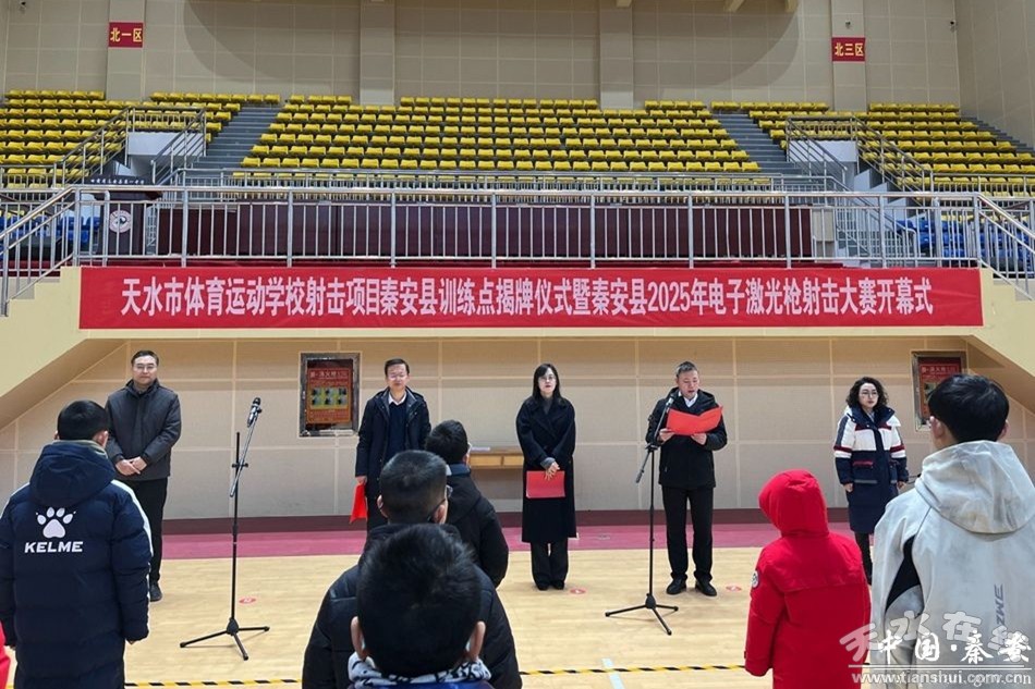 1月16日,天水市体育运动学校射击项目秦安县训练点揭牌仪式暨秦安县2025年电子激光枪射击大赛在秦安县体育馆开赛,县委常委、宣传部部长马昊莹,县政府副县长章春军及各相关单位部门负责人和参加射击比赛的运动员等共计200余人参加活动。