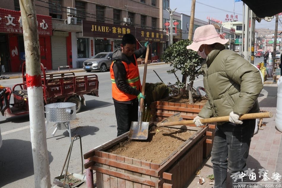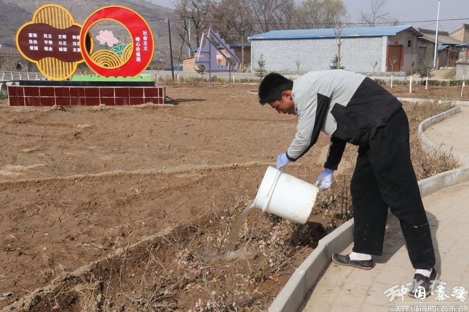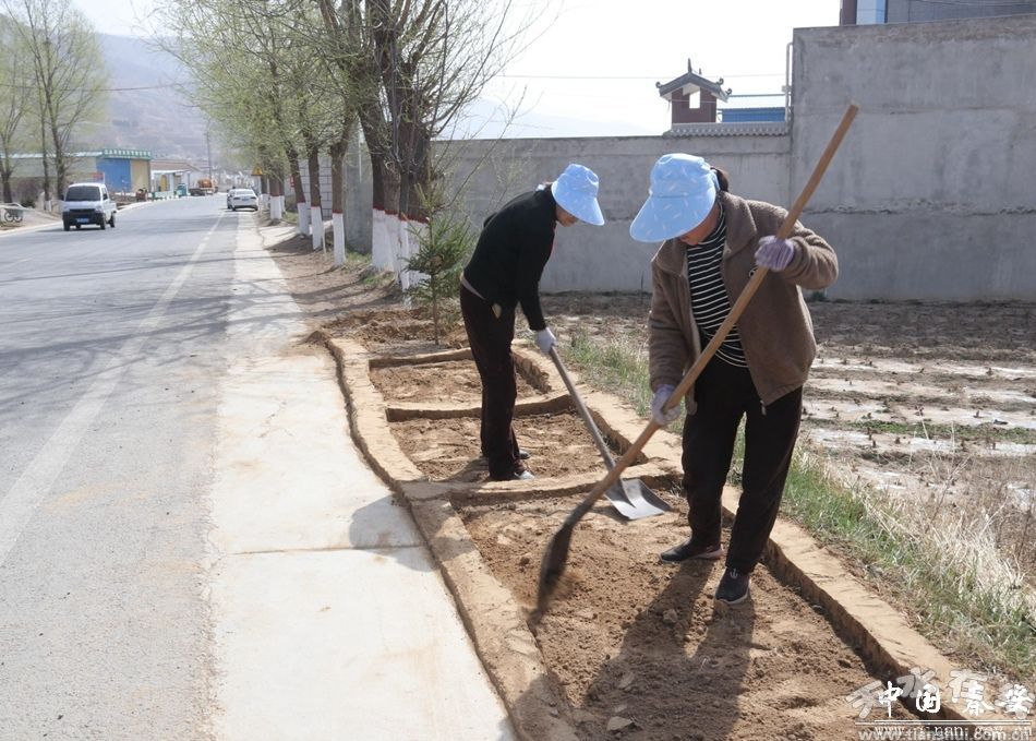 莲花镇郭河村党总支副书记郭百顺告诉记者:“我们村从3月初组织村组干部,公益性岗位20余人,对村里所有花园,行道树木进行松土,除草,后续进行栽植、覆膜、浇水。”
