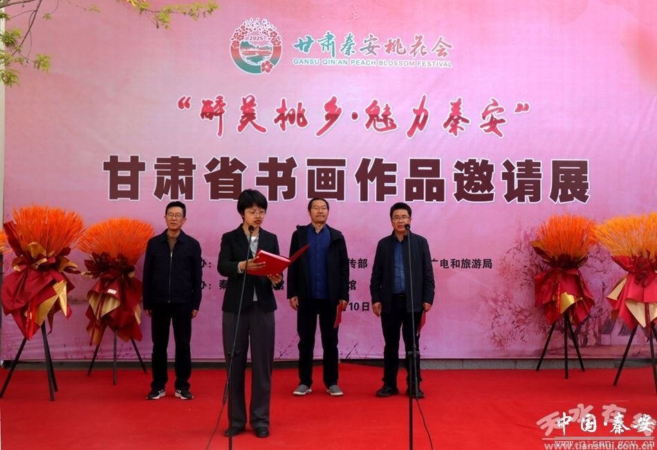 4月10日,“醉美桃乡魅力秦安”甘肃省书画作品邀请展在县文化馆开展。甘肃画院副院长李靖,县领导任云飞、蒋露、雒小军,县委宣传部、县文旅局、县文联、县文化馆部分职工,以及县内书画爱好者参加活动。