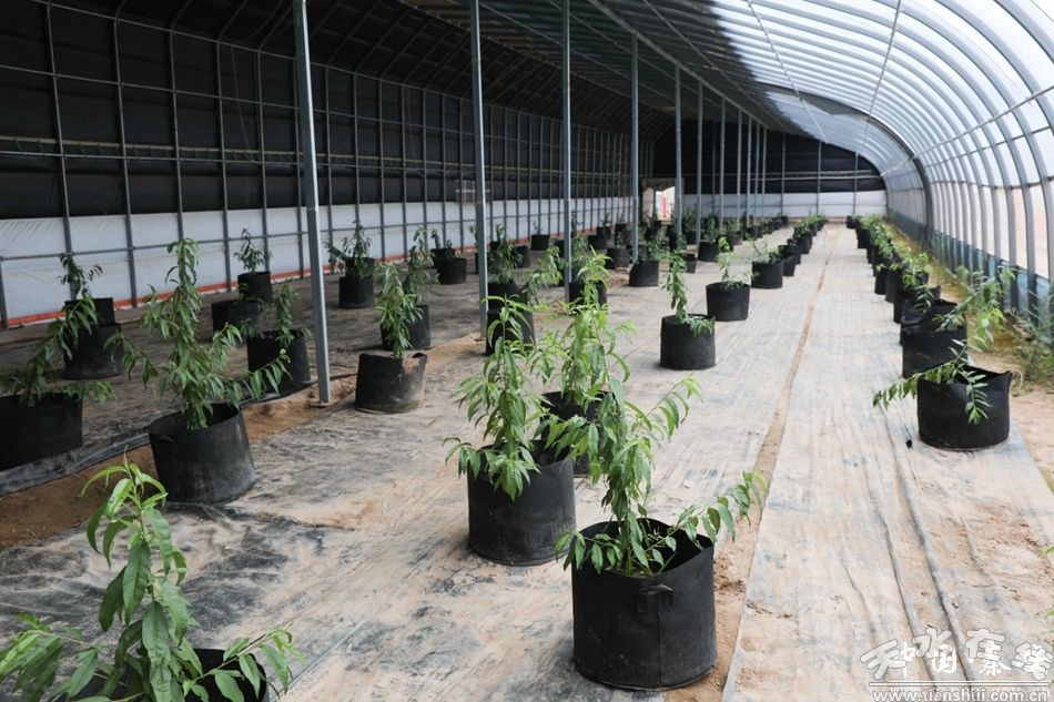 刘坪镇一二三产融合发展中心采用活体盆栽种植模式,已种植秦安蜜桃15000余株,主栽品种包括北京七号、陇油桃1号、陇蜜系列等15个优质品种,85%以活体盆栽种植为主,亩均产量达2吨。自主研发的秦瓴智耘环控系统,构建“室外气象温室环境-桃树物候”三维协同模型,实现全自动化精准调控,将传统“靠天吃饭”的模式升级为“数据驱动型精准农业”,人力成本降低70%,并采用“智眠双季”模式,通过冰点强制休眠与智能温室唤醒技术协同,实现“早春抢鲜”与“寒冬反季”双季供应。