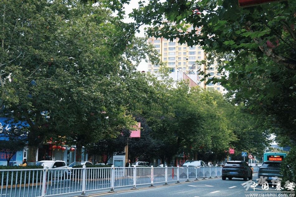 伴随气温骤降与秋雨洗礼,秦安县的秋景也悄然铺开,多了几分水润的灵动。城区主干道两侧的行道树虽未褪去盛夏的翠绿,却在雨水的滋润下更显鲜亮,叶片饱满舒展,雨后的枝叶上还挂着晶莹的水珠,微风轻轻一吹,水珠顺着叶片边缘滚落,轻盈地飘落在地面,为整洁的街道添了几分秋日的温柔,成为街头一道清新雅致的风景线。