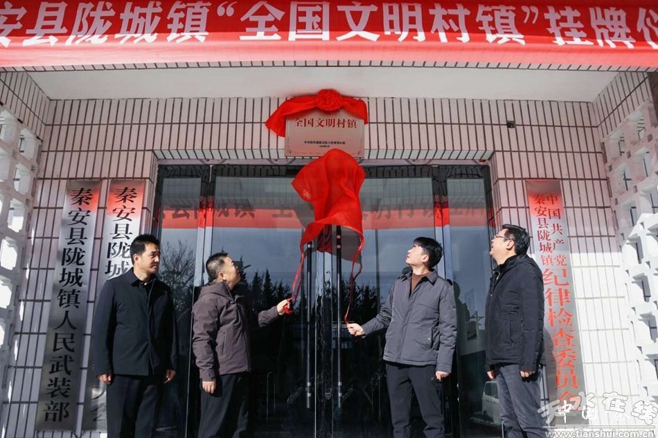 11月24日,秦安县开展“敲锣打鼓送荣誉”主题活动,为第七届“全国文明村镇”陇城镇举办挂牌仪式。县委常委、宣传部部长陈升,县委宣传部相关负责人,陇城镇党委、政府班子成员、镇村干部代表及镇属单位负责人及陇城镇先进模范人员代表参加活动。