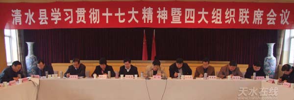 清水县四大组织全体在家领导及县直各部门主要负责人参加会议