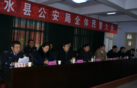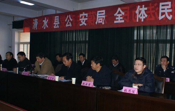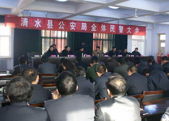 12月28日,清水县召开公安局中层领导干部任职大会,县委副书记、县长刘天波,县委副书记李宽余,县委常委、副县长李晓卫,县委常委、政法委书记赵云清,县委常委、纪检委书记妥国保,县委常委、组织部部长张思佳,县委常委、永清镇党委书记刘伊冰出席会议。