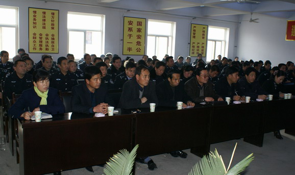 县公安局局长霍宝珊宣读干部调整交流工作方案,县公安局政委崔志强作表态发言