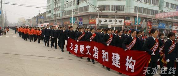清水县四大组织有关领导参加了活动,县委书记雷鸣宣布清水县庆“三八”迎奥运妇女健身行活动启动仪式开始,县长刘天波作了重要讲话。