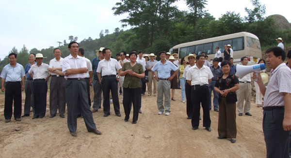 在秦亭镇视察小城镇建设和易地搬迁情况