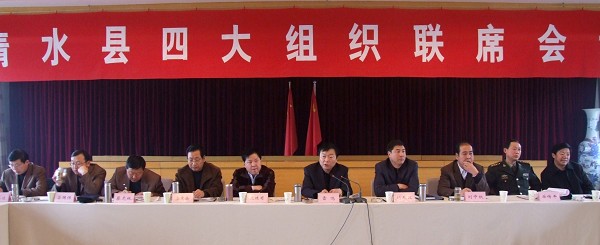 (清水县委对外宣传办公室 刘海仙 杨兆康)2月19日上午,清水县委书记雷鸣主持召开了四大组织联席会议,听取了有关部门前一阶段的工作汇报,安排了包乡县级领导深入乡镇开展调研指导工作,并对今年全县重点工作进行了简要安排。