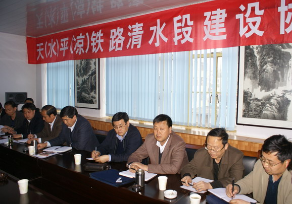 (清水县委对外宣传办公室 刘海仙 杨兆康)4月8日,清水在政府二楼会议室召开天(水)平(凉)铁路清水段建设协调会。天平公司、中铁十九局、中铁二十一局负责人,清水县委副书记、县长刘天波,县委常委、副县长刘中秋,县委常委、副县长蔡虎林,副县长董小明及清水县相关部门负责同志参加了会议。