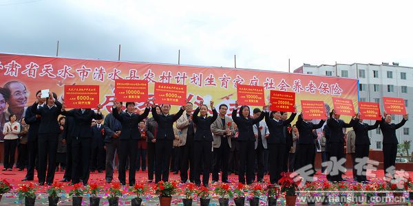(现场捐款,支持清水县农村计划生育家庭社会养老保险工作)