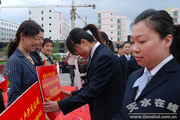 (天河酒业现场捐款,支持清水县农村计划生育家庭社会养老保险工作)