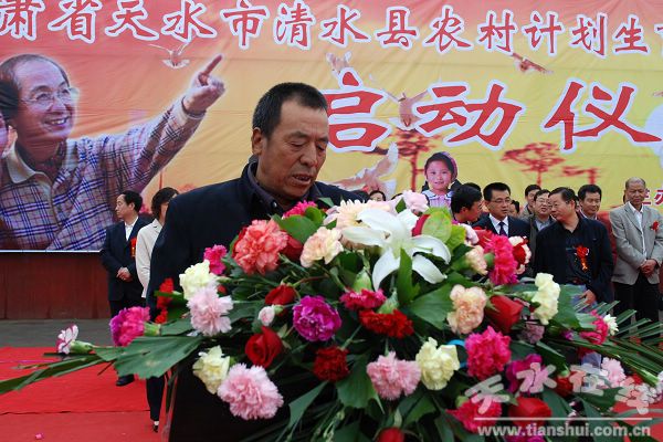 出席启动仪式的还有市人口委等相关部门领导,各县区分管领导和相关部门负责人,清水县四大组织领导,清水县各乡镇、县直及省、市驻清单位全体干部职工,全县260个村党支部书记,全县农村计划生育家庭领取养老金全体人员,永清镇独女领证户和二女节育户代表。