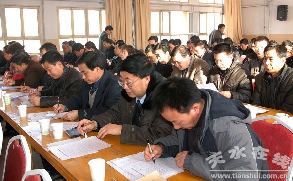 1月7日下午,清水县召开县委加强基层党组织建设情况测评大会。市委测评指导组组长李德祥出席会议并作讲话,县领导王振宇、刘天波、李宽余、妥国保、魏胜奎、张秀丽、夏草,各乡镇党委书记,各部门党组织主要负责人,部分省、市驻清单位党组织负责人,社区党组织和部分非公有制经济组织、新社会组织党组织负责同志,以及部分基层党代表共计110余人参加了会议,县委副书记、县长刘天波主持测评大会。