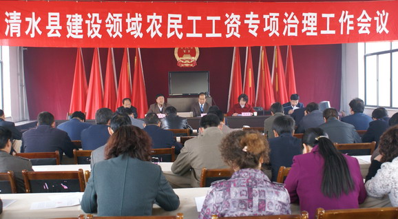 3月26日,清水县召开全县农民工工资专项治理和社保扩面工作会议。县委常委,副县长刘中秋,县委常委,副县长蔡虎林,县人大副主任梁治新,县政协副主席王天奉出席了会议。县直有关部门,部分工程建设单位负责人参加了会议。