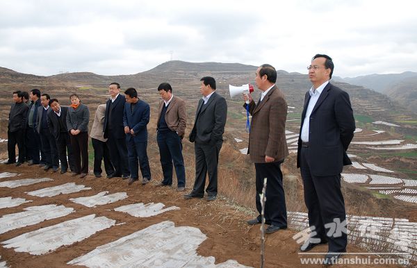 (清水县委对外宣传办公室 朱建峰 杨兆康)4月8日,清水县召开全膜覆盖双垄沟播玉米种植工作现场会,对当前全膜玉米种植工作进行了小结,通报了全县全膜覆盖双垄沟播玉米种植情况,肯定成绩,寻找差距,再鼓干劲,确保按期完成任务。县委书记王振宇,县委副书记刘中秋,县委常委、永清镇党委书记夏草出席会议。