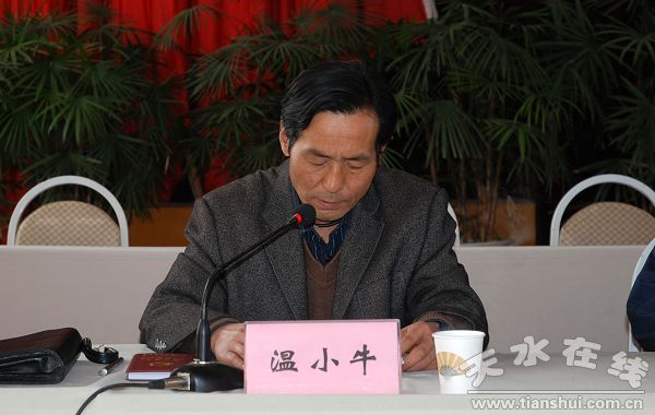 县委办公室副主任、县委保密办主任、保密局长温小牛作工作报告