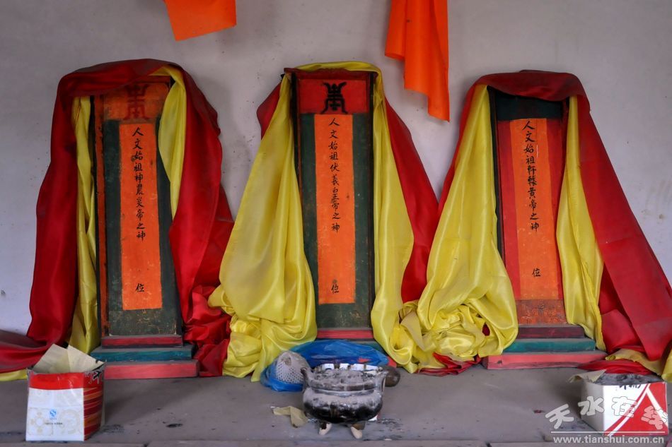 (三皇庙庙内设有伏羲、炎帝和黄帝的神像牌)