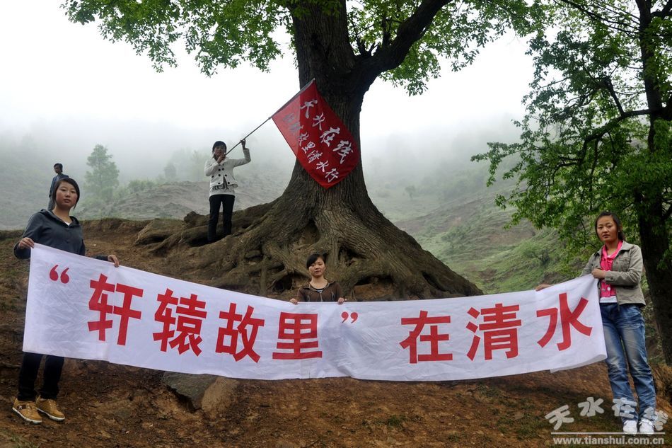 清水轩辕谷地处县城东七十华里的山门镇白河村三皇沟。这里是轩辕黄帝出生的风水宝地。据诸多文献史料记载和推算,黄帝出生至今约有将近4700年的历史。相传远古时期清水轩辕谷依秦岭接关山,峡谷两岸峰峦叠嶂、森林密布、古木参天、野草丰茂。谷底有三条细流汇集而成轩辕溪。在轩辕溪头两流交汇处正中,靠南朝北坐落着绿树葱浓端妆秀美的轩辕丘。在轩辕丘东侧半山腰生长着一棵枝杆特别高大的参天古松,树下悬卧一块方正有形的巨石,石长7尺,宽3尺,高1米多,石面平正,它就是轩辕石(台),也称轩辕“睡石”。从轩辕石再往北的山脚下有一块高台地,台地周围古树林立,中间曾有黄帝诞生时其母附宝居住过的茅草屋(当时的地窝、地坑)。在茅草屋附近,还曾有龙潭,据传说当时的古龙潭水清如镜,水深如洞,潭中有龙。龙潭周围林草丰茂,潭水中常年倒影着轩辕谷秀美迷人的山水画面。据史料记载,轩辕黄帝处处以龙为神灵,龙是黄帝氏族的徽号。因此,古龙潭正就是黄帝奉龙的最好栖息地。追溯轩辕谷数千年的地貌史,可以看出此地虽有其非常特殊的风水地脉,但就当时的氏族社会状况,决定着生存在这里的先民们其生活简陋程度是可以想象的。加之深谷密林中气候阴湿寒冷,以及兽类出没活动,对人类生存和生活造成的极大不利影响。相传黄帝3岁时就随母走出深谷,迁居到今清水县城以北向阳山坡轩口窑村头的两口旧窑洞——轩辕窑(民间惯称轩口窑,即黄帝母子两口人栖居之窑)里面生活。