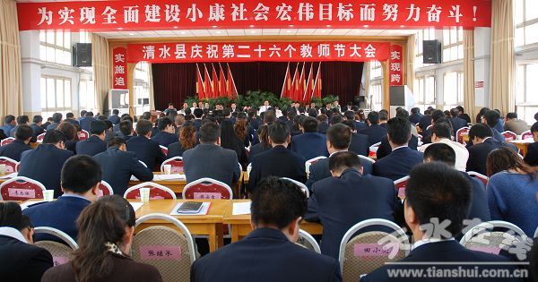 (清水县委对外宣传办公室 朱建峰 杨兆康 张建新)9月7日,清水县在轩辕宾馆北二楼会议室召开第二十六个教师节庆祝大会。兰州大学党委书记王寒松,兰州大学党委常委、副校长安黎哲等党政领导应邀出席会议,该县四大组织全体在家领导,各乡镇党政主要领导,县直各部门主要负责人,各学区、局直学校校(园)长,受表彰的优秀教育工作者和教师220多人参加了会议。