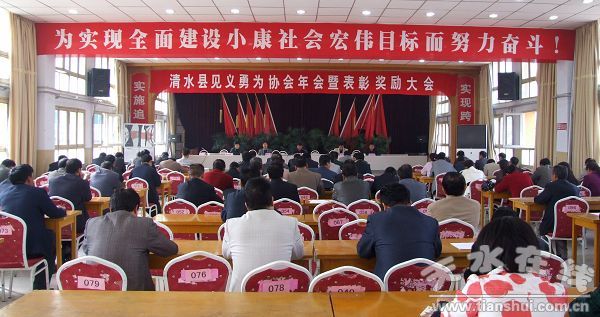 (清水县委对外宣传办公室 朱建峰 杨兆康 张建新)10月12日,清水县在轩辕宾馆北二楼会议室召开见义勇为协会年会暨表彰奖励大会,总结2009年的工作,表彰奖励一年来涌现出的见义勇为先进集体和个人,进一步在全县上下营造“见义勇为光荣、见义不为可耻”的浓厚社会氛围,促使全县经济和各项社会事业又好又快发展。
