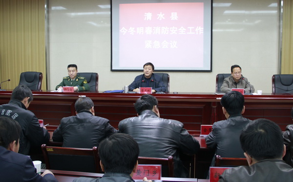 为了进一步贯彻落实党中央、国务院及省、市关于进一步做好消防工作坚决遏制重特大火灾事故的有关精神,切实做好今冬明春消防安全工作,11月24日,清水县召开今冬明春消防安全工作紧急会议,就全县消防安全工作做了安排部署。县委常委、县政府常务副县长蔡虎林出席会议。