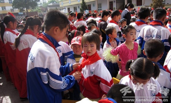 (给新少先队员授领巾)