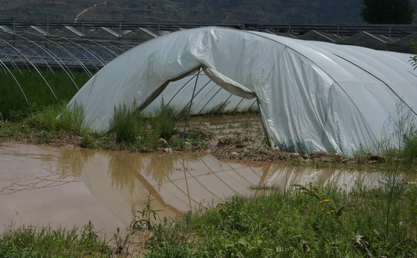 洪水冲进了红堡农业园区的蔬菜大棚