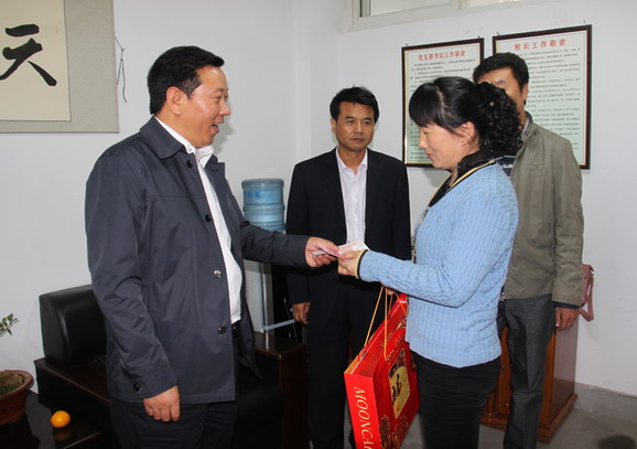 在六中、东关小学,马越垠为困难教师送去了礼品和慰问金并了解了他们的工作、生活、家庭、子女等情况,对他们为全县教育事业所做出的贡献致以深深的感谢。