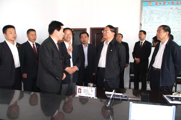 5月9日,省高级人民法院党组书记、院长梁明远,党组副书记、副院长南明法,党组成员、副院长马平、张萍、王军,党组成员、纪检组长马驰,执行局长袁治云一行在清水县调研,市中级人民法院院长马忠福、副院长高同银、王勇谋、张继民、王烨及县委副书记赵云清,县委常委、副县长马小龙、县人大常委会副主任王明顺、县法院院长张保定陪同调研。