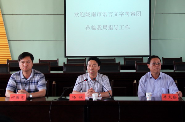 6月13日至14日,陇南市教育局副局长马骎带领陇南市语言文字工作考察团赴清水县考察学习语言文字工作。天水市教育局副局长席克勤,清水县委常委、宣传部长张秀丽,副县长何敬忠,市县相关部门负责人陪同考察。