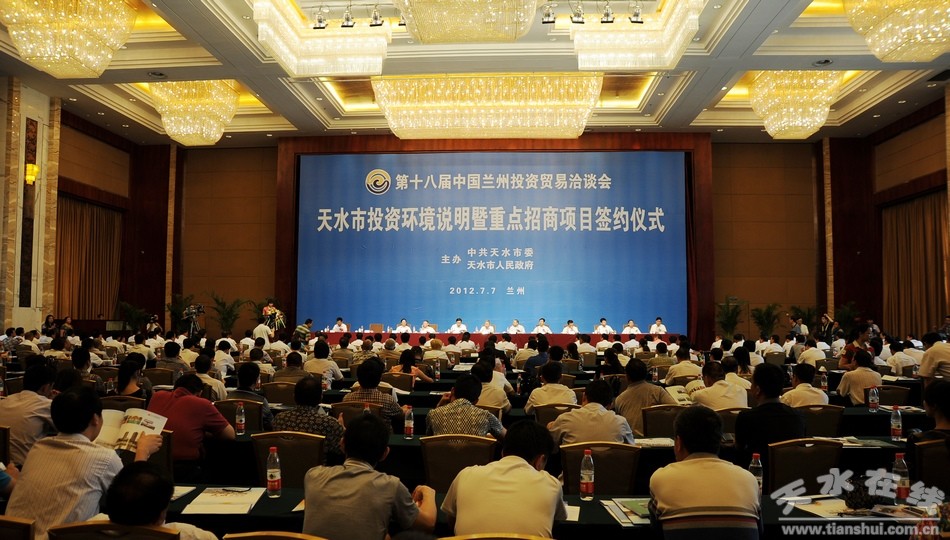 7月7日上午,在第十八届兰洽会隆重召开之际,天水市投资环境说明暨重点项目签约仪式在兰州宁卧庄宾馆举行。