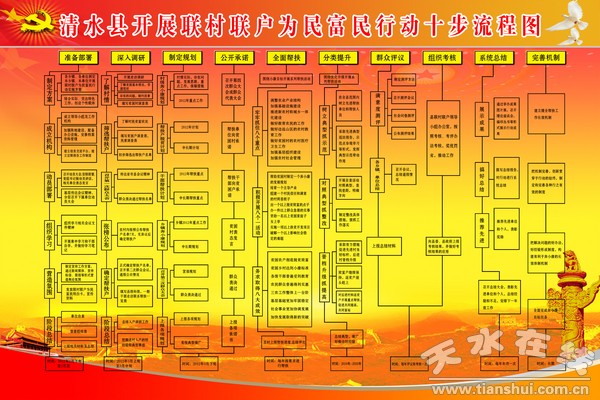 清水县还探索总结出了“十步流程图”、“三访三联三帮”等做法,得到了省市的充分肯定。目前,该县“双联”行动已由双向对接转向实质连接、由全面推开转向纵深推进。
