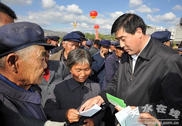 (县委书记刘天波发放养老金存折)