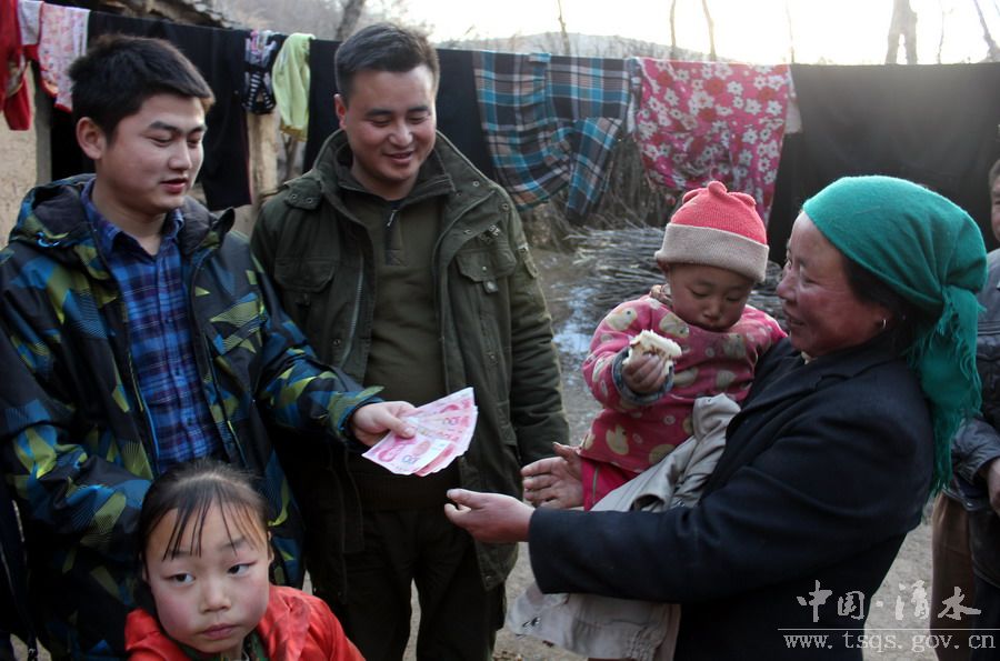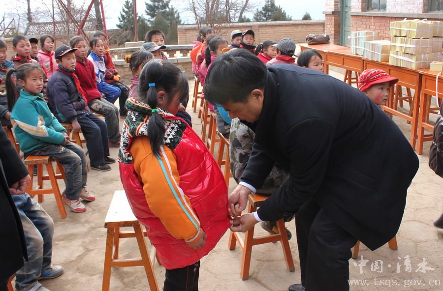 今年11月份,周玉泉先生了解到清水县贫困山区学生的一些基本情况后,就产生了来清水走访慰问的念头。他们在短短的10天之内就募捐了大量的现金和衣物。12月6日他们从江苏江阴出发, 8日早上到达清水,他们不顾旅途劳累,在县政府办公室、儿童基金会工作人员及一些志愿者的陪同下深入新城、白驼2乡镇4所小学举行了爱心捐助仪式。仪式结束后,他们走访了6户困难学生家庭,详细了解困难户家庭的收入、生活及子女上学问题,并为他们捐赠现金10000元,衣物60多件。