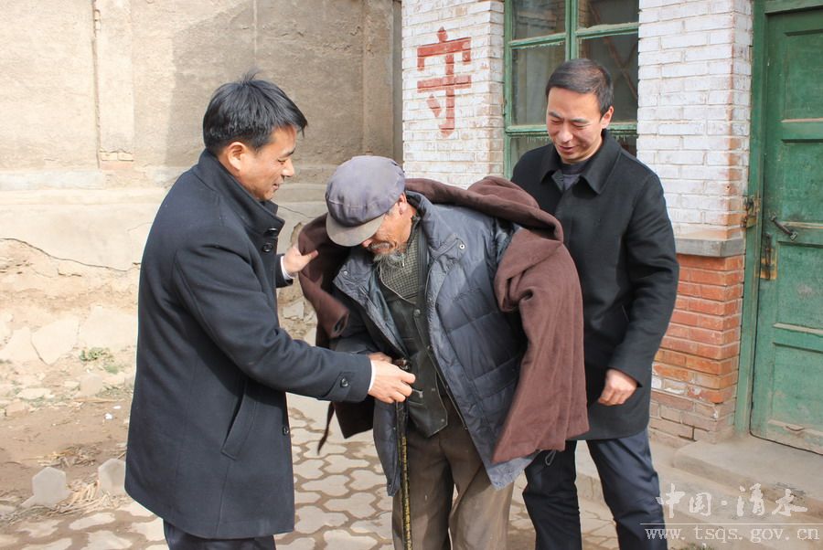 (为孤寡老人发放棉衣)