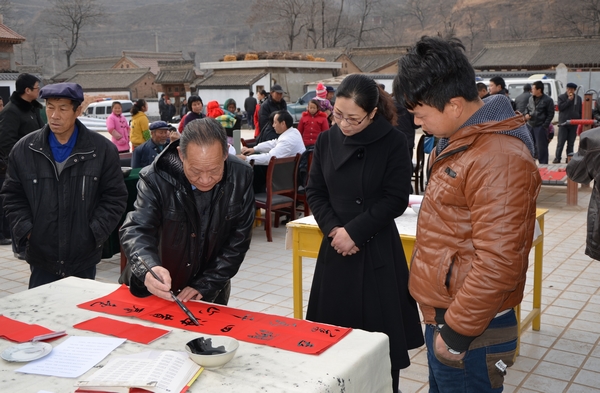 “今天听见村里的广场上有活动,我就过来看看,过来后看见县上的大书法家免费给大家写字画画,我就想着看能不能让大书法家给我也写个对联,没想到他们不但给我写对联,还一下子写了好几副,我家今年过年的对联就算写好了,还是大书法家写的”,一位群众手里拿着几幅对联高兴的说。