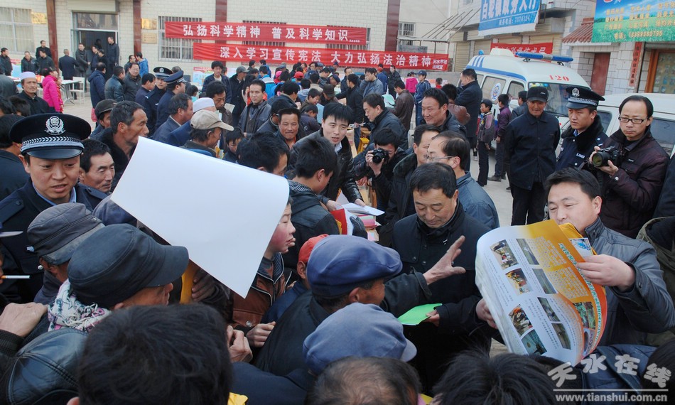 为了深入贯彻学习党的十八大精神,动员社会各方面力量支持“三农”、服务“三农”,满足农民群众日益增长的物质文化精神生活需求,大力推进农村精神文明建设,进一步推动全市农村经济和社会全面发展,吹响全面建成小康社会的号角,1月30日,由中共天水市委、天水市人民政府主办;中共天水市委宣传部、中共清水县委、清水县人民政府承办的2013年天水市科技、文化、卫生“三下乡”集中示范活动走进清水县白驼镇。