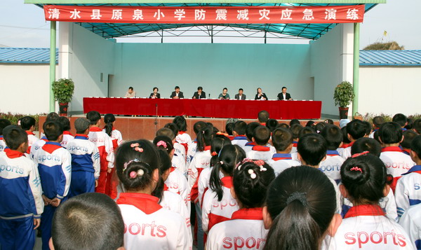 5月9日下午,清水县地震局、教体局、红十字会联合举行的防震减灾应急疏散演练活动在清水县原泉小学举行。清水县政府副县长何敬忠出席了演练活动,县政府办、地震局、教体局、红十字会等相关部门负责人及原泉小学全体师生参加了防震减灾应急疏散演练活动。