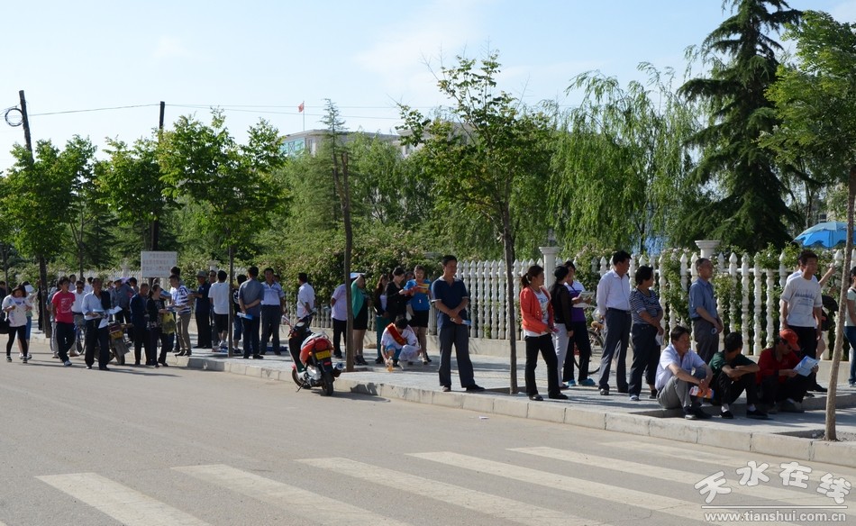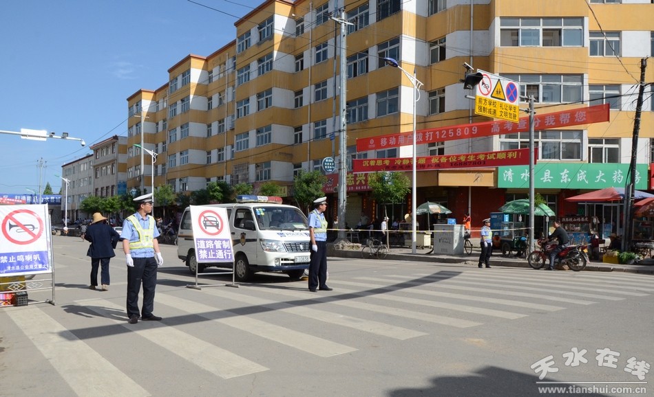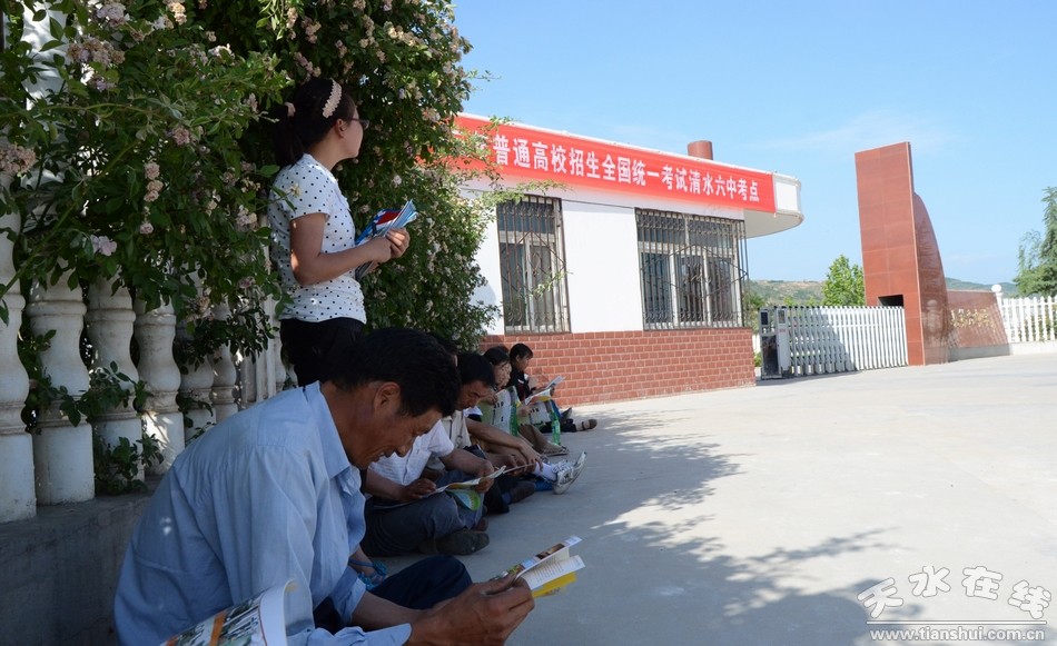 记者在清水县一中、三中、五中、六中考点校门口看到,交警、环保、综合执法、电力等部门和单位已在各考点外进行了全面管制。考点附近,家长们顶着烈日等待着在考场上拼搏的考生们。