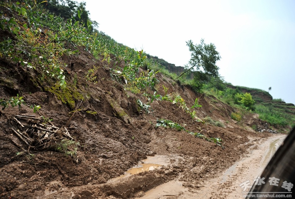 (清社路沿线山体滑坡频发,泥石流涌入路面)