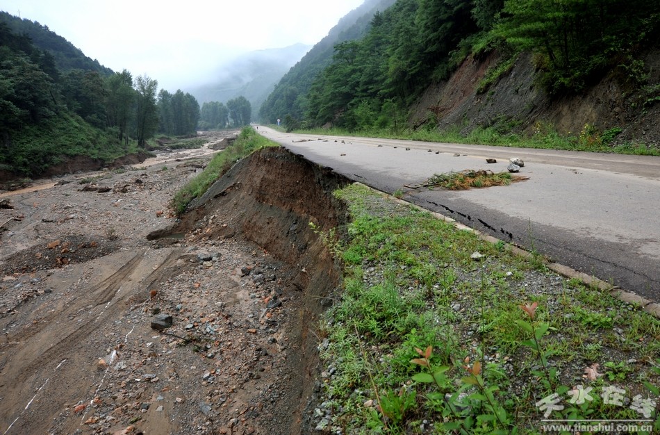 (泥石流冲毁清社路路基)