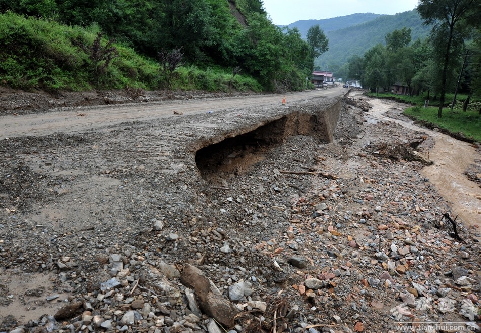 (洪水冲毁清社路路基)