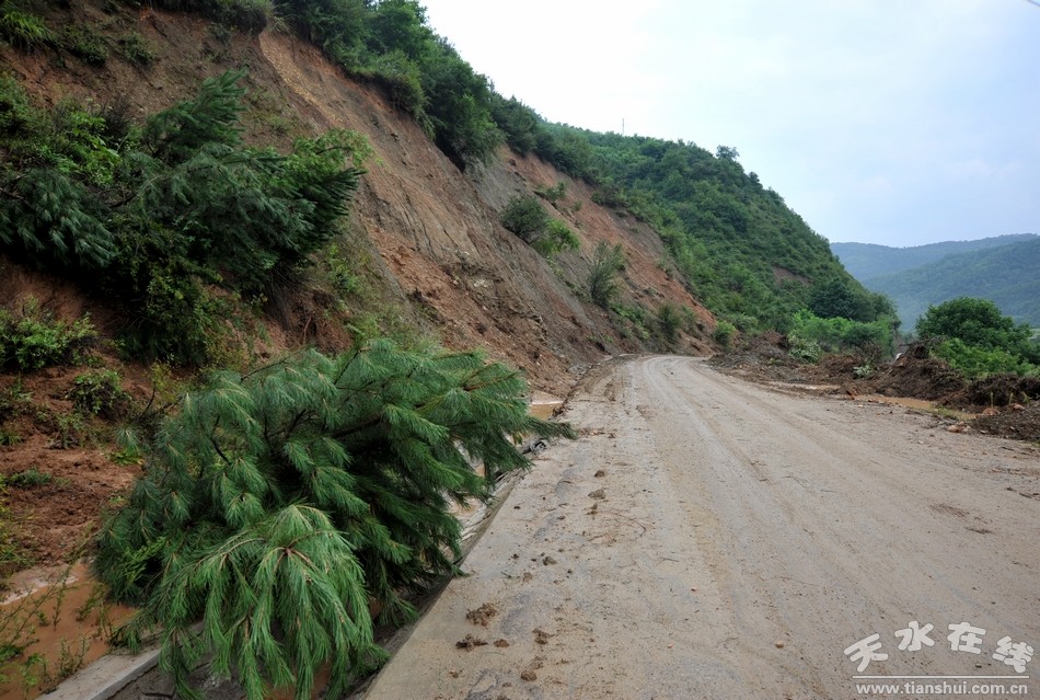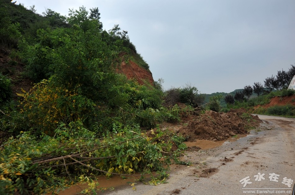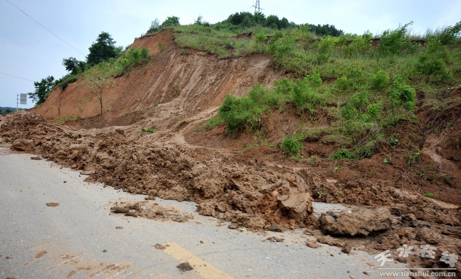 (清社路沿线山体滑坡频发,泥石流涌入路面)