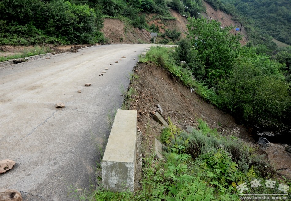 (清社路沿线山体滑坡致使路基塌陷路面受损)