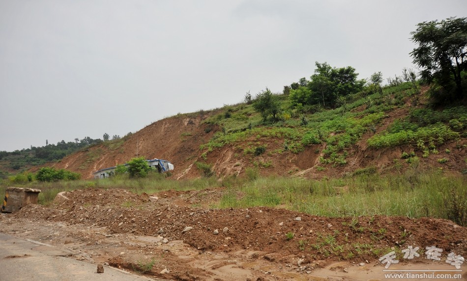 (清社路沿线山体滑坡,泥石流涌入路面)