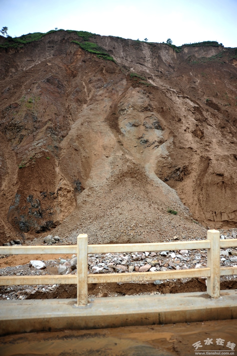 (清社路沿线山体滑坡,泥石流涌入路面阻断交通)