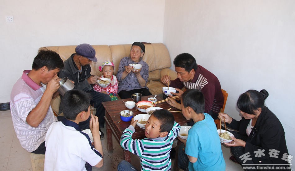 (草川铺乡火石村村民宋金财在亲戚家吃午饭)