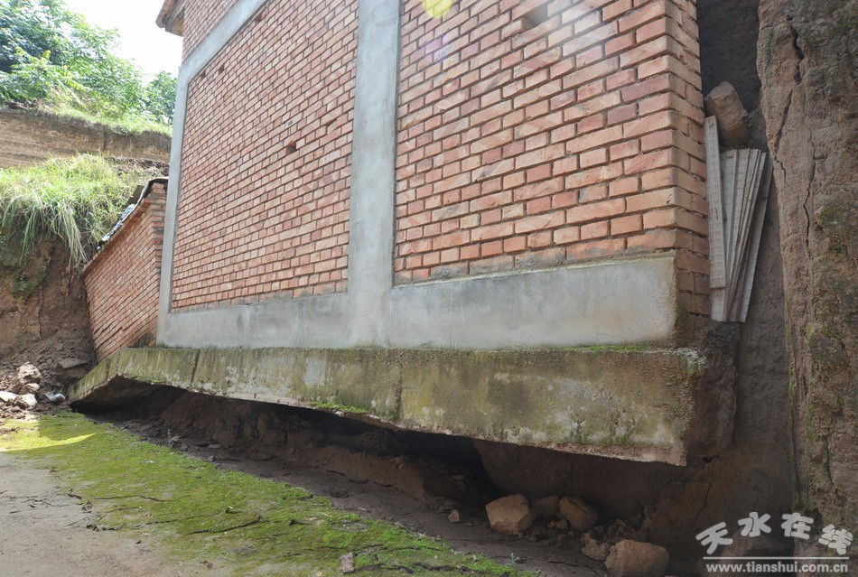 (远门乡夜明村曹王自然村山体滑坡,村民新建的房屋地基下陷)